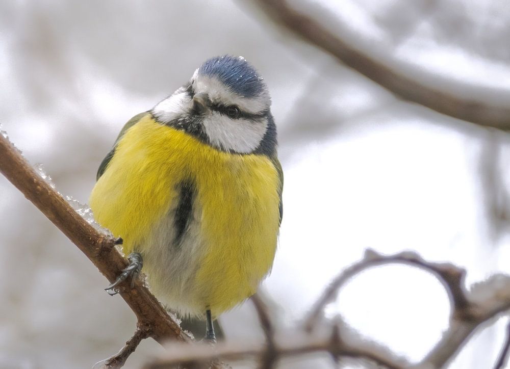 Pimpelmees op een besneeuwde boom