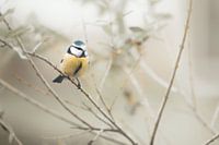Dit kleine pimpelmeesje zat rustig op een tak. Een fijne bezoeker in de tuin!
