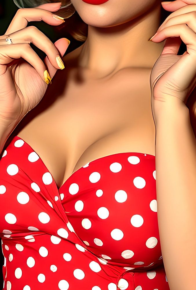 glamourfotografie pinup vrouw in vijftig zestiger jaren stijl met polkadots jurken en typische kapsels voor die tijd