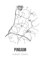 Zwart-witte landkaart, stratenplan of plattegrond van Pingjum. Pingjum is gelegen in de gemeente Sudwest-Fryslan, provincie Fryslan. Op de stadskaart zijn alle openbare wegen in Pingjum opgenomen. Verder is de kaart voorzien van de coördinaten van het centrum van Pingjum.