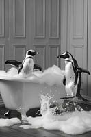 Op dit schattige badkamerkunstwerk zijn twee speelse pinguïns te zien die vrolijk rondspetteren in hun badkuip en een heerlijk amusante sfeer toevoegen aan je toilet. De zwart-wit fotografie vangt de levendige aard van de pinguïns en benadrukt de details van de scène, waardoor het een charmante en unieke toevoeging aan je badkamer is.…
