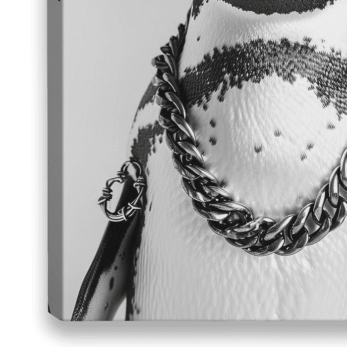 Een portret van een pinguïn in stijlvolle kleding, met hoed en zonnebril, zwart-wit afbeelding, voor modieuze en creatieve concepten.