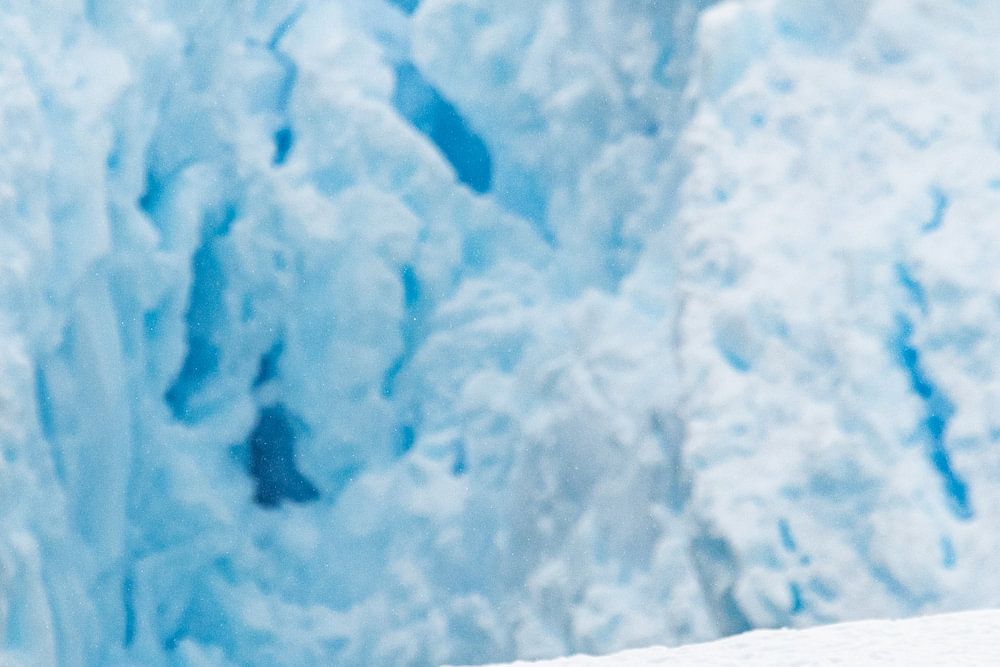 Twee kleine pinguïns waggelen voorzichtig over de ijzige vlakte in Antarctica. Achter hen ligt een enorme gletsjer.