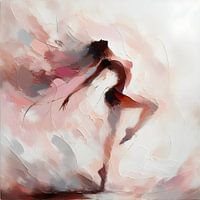 Ontdek de expressieve schoonheid van een olieverfwerk dat de sierlijke beweging van een dansende vrouw weergeeft, uitgevoerd in zachte roze- en bruintinten. Haar silhouet straalt gratie en vrijheid uit, met vloeiende lijnen die haar bewegingen tot leven brengen. De warme bruintinten geven het werk een natuurlijke, aardse warmte, terwijl de roze accenten een gevoel van lichtheid en vreugde toevoegen. Dit werk vangt de energie en emotie van de dans op een subtiele en elegante manier, perfect voor wie een dynamische en toch serene sfeer aan zijn ruimte wil toevoegen.