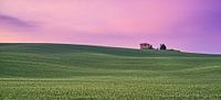Mooie paarse lucht bij zonsopgang bij Pienza in Toscane