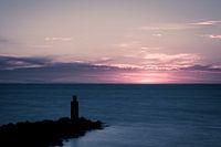 Foto van mooie zonsondergang, gezien vanaf het strand. Ergens langs de Nederlands kust.