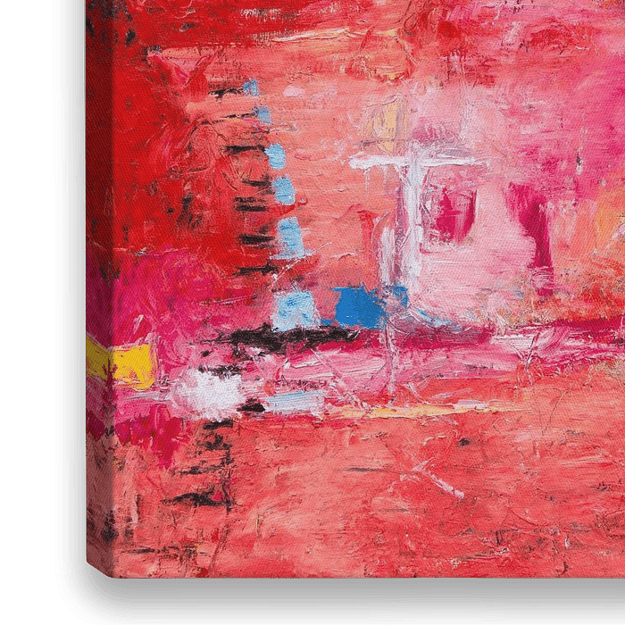 Koop dit landschapskunstwerk Pink View | Abstract schilderij met roze, rood, paars en blauw van Anja Namink - Schilderijen als print op canvas, aluminium dibond, (ingelijste) fotoprint, behang en ArtFrame. Voor jou op maat geprint in Fine-Art kwaliteit.