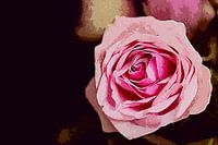 Mixed media kunstwerk van een mooie, bijna uitgebloeide, roze roos.
