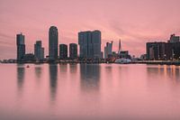 Roze zonsondergang in de rijnhaven van Rotterdam.