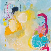 Een zonnig abstract schilderij met speelse kleurrijke elementen. Een zomers feestje voor je ogen dat uitnodigt om zelf bij te fantaseren.