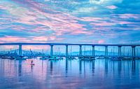 Magische kleuren benadrukken dit havengezicht in de vroege ochtend. Uitzicht op de haven van San Diego en de Coronado Bridge. Gefotografeerd in de stad Coronado, Californië, VS. Bedankt voor je interesse in mijn werk.