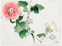 Japanse kunst, Japan, wabi-sabi, Aziatische kunst, vintage, retrostijl, botanisch, oude meesters, bloem, plant, natuur, roos, pioenroos, schilderij