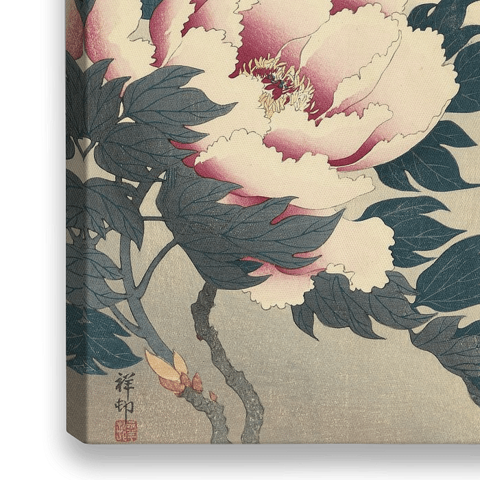 Koop Pioenroos met vlinder, Ohara Koson als reproductie op canvas, aluminium dibond, (ingelijste) fotoprint, behang en ArtFrame, op maat geprint in Fine-Art kwaliteit.