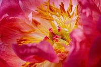 Close-up van de bloem van een rood-gele Pioenroos.