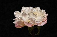 Digitaal schilderij van een solitaire pioenroos met mooi invallend licht waardoor deze lijkt te gloeien.