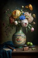 Stilleven in de stijl van de 17e eeuwse meesterschilder Balthasar van der Ast. Van der Ast schilderde zeer verfijnde stillevens van fruit en bloemen. Zijn composities en zijn kleurgebruik zijn zeer afgewogen. Geleidelijk werden zijn werken groter en complexer, tot hij later in zijn lange loopbaan pronkstillevens schilderde. Dit werk is tot stand gekomen met een mix van klassieke schilderkunst en moderne digitale kunst techniek op een computer.