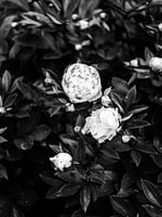 Waar je een beeld van een pioenroos vaker ziet in kleur, geeft zwart wit weer een heel ander beeld van deze prachtige, elegante bloem. Ik fotografeerde deze pioenrozen in de botanische tuinen van Brooklyn, New York City.