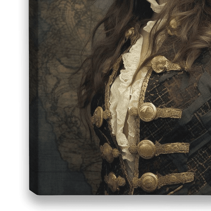 Portret van een vrouwelijke piraat in Victoriaanse stijl.