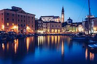 Das slowenische Adria-Städtchen Piran im Licht der Blauen Stunde.