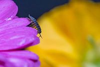Deze pissebed mocht even op mijn bloemen lopen. Bijna onvoorstelbaar hoe mooi ze eigenlijk zijn. De ene bloem is overigens een gerbera en de andere een ranonkel.