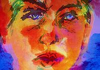Dit werk is een collage van ,snelle expressieve en realistische schets in ecoline met tekenpen en penseel, portretfoto van mijn zoon met versterkte kleurcontrasten.…