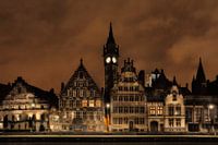 Deze foto heb ik gemaakt in Gent in februari 2011. In de schemering met alle lampjes die aangingen. Gent is de hoofdstad van Oost-Vlaanderen en van het arrondissement Gent. Het is een zeer sfeervol stadje met mooie grachtenpandjes in allerlei soorten, maten, afmetingen en geveltjes.