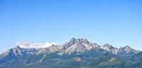 Prachtig, weids panorama van de Hoge Tatra met de majestueuze Lomnicky piek op een zonnige dag tegen een blauwe lucht.