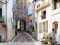 Nébian is een kleine plaats in Zuid-Frankrijk. In het rustige dorp zijn allerlei leuke straatjes te vinden. Er is veel te zien op dit karakteristieke plaatje, o.a. de lichtblauwe luiken die je veel ziet in de zuidelijke landen. Verder een doorkijkje door een lage poort en planten in potten op stoep en trap. Een pittoresk straatje.