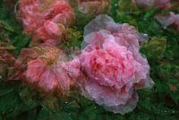 Prachtige pioenroos na een regenbui