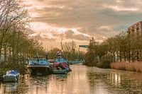 De Piushaven is bevroren met een klein laagje ijs op het water.