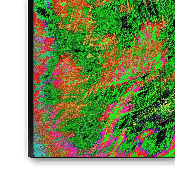 Op de computer diverse programmas en nabewerking uitgevoerd met het einddoel een kleurrijk abstract werk.