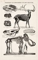 Antieke plaat uit ca. 1900 met archeologische vondsten uit het Diluvium. Wij zien o.a. de geraamtes van de holenbeer, mammoet en het reuzenhert.