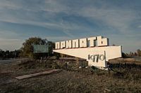 Koop de foto Plaatsnaambord van Prypyat bij Tsjernobyl in Oekraïne in de herfst van Robert Ruidl op canvas, aluminium dibond, (ingelijste) fotoprint, behang en ArtFrame, op maat geprint in Fine-Art kwaliteit.