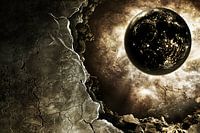 Mysterieuze planeet verschijnt uit een onwaarschijnlijk gat. Een surrealistisch kunstwerk van Vincent van Gogh dat je aan het denken zet.