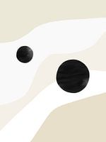 Moderne minimalistische illustratie van het universum met planeten. Neutrale beige en wit tinten met een zwart accent.