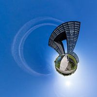 De unieke architectuur van de 75 meter hoge Tasmantoren op de kruising van het Van Starkenborghkanaal en het Eemskanaal in Groningen vastgelegd op een Little-Planet.