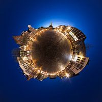 Een Little-Planet van de Vismarkt in Groningen bij het invallen van de avond. Aan het Westelijke uiteinde van de Vismarkt (boven) zijn de Der Aa-kerk en de Korenbeurs nog goed zichtbaar. Zover ik kon zien in mijn archief is dit de eerste Little-Planet geschoten tijdens het blauwe uurtje.
