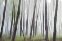 Landschap op het natuurgebied Planken Wambuis in Otterlo, op de Veluwe in Gelderland. Hier is gebruik gemaakt van ICM, ofwel intentional camera movement, wat voor een abstract en dynamisch beeld zorgt. De mist tussen de bomen geeft een extra dimensie.