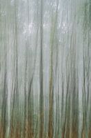ICM (ofwel intentional camera movement) op natuurgebied Planken Wambuis in Ede, op de Veluwe in Gelderland. Hier zie je een bewust bewogen foto van enkele dennenbomen, wat voor een dynamisch en abstract beeld zorgt.