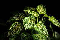 Deze botanische kunstprint toont de verfijnde schoonheid van een kamerplant met indrukwekkende bladeren. De bladeren zijn rijk gedetailleerd, met opvallende patronen en nerven in levendige groentinten. De donkere achtergrond benadrukt het spel van licht en schaduw, waardoor de natuurlijke vormen en structuren van de plant een krachtig…
