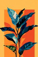 De diepgroene bladeren ontvouwen zich met rijke tinten en elegante lijnen tegen een warme, heldere achtergrond. Hun vorm lijkt levendig en dynamisch, terwijl het spel van licht en schaduw een harmonieuze verbinding creëert met het krachtige kleurenschema. Een symbool van natuurlijkheid en chic in perfecte balans.
