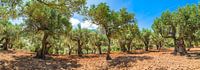 De landbouw van de aanplanting van het landschapspanorama van de olijfgaard, Mallorca