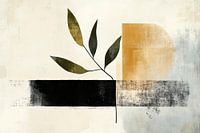 Zachte aardetinten ontmoeten minimalistisch design; een harmonieuze compositie van geometrische vormen en delicate bladeren straalt rust en elegantie uit. Ideaal voor de woonkamer, het brengt een natuurlijke, ontspannen sfeer en verandert elke kamer in een oase van rust. Perfect om het alledaagse leven achter je te laten.
