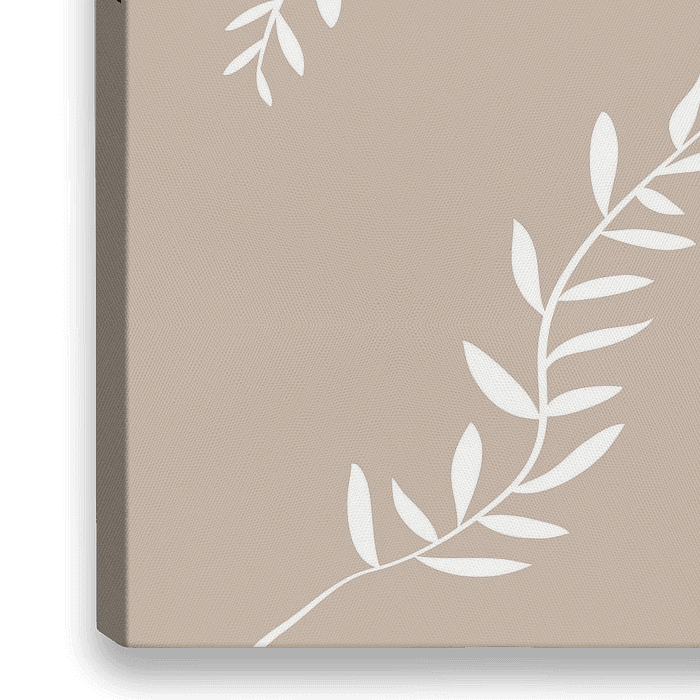 Abstracte minimalistische illustratie van witte planten op een beige achtergrond.