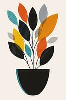 Deze minimalistische plantenillustratie toont een stijlvolle afbeelding van kleurrijke bladeren in een eenvoudige vaas. De gedurfde kleuren en strakke lijnen passen harmonieus in elk modern interieur. Een ideaal kunstwerk voor natuurliefhebbers en degenen die de voorkeur geven aan een eenvoudig maar levendig ontwerp. Perfect voor woonkamers, kantoren of slaapkamers om een rustgevende en verfrissende sfeer te creëren.