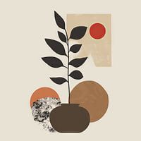 Deze moderne, minimalistische illustratie betovert met zijn eenvoudige lijnen en aardse kleurtinten. Met een abstracte plant op de voorgrond en geometrische vormen op de achtergrond voegt dit kunstwerk een rustige en stijlvolle touch toe aan elke kamer. Perfect voor hedendaagse kunstliefhebbers die op zoek zijn naar een subtiele maar expressieve decoratie. Ideaal voor woonkamers, kantoren of creatieve werkruimtes.