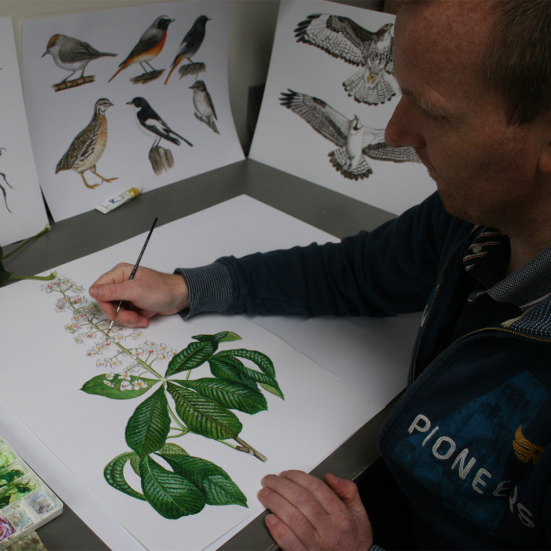 Graag stel ik mij aan u voor. Ik ben Jasper de Ruiter (1975) en ben natuurillustrator. Ik maak natuurgetrouwe illustraties van planten en dieren voor natuurboeken, tijdschriften, biologieboeken, maar ook voor aan de muur. Met mijn werk haal je een vleugje van de schoonheid van de natuur in huis. Daarnaast heb ik een eigen productlijn, waarbij ik mijn werk verwerk ik in educatieve producten om de natuurbeleving van jong en oud te vergroten.