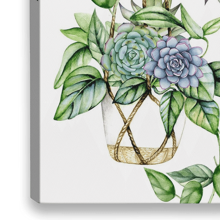 Plantenhangers in macramé gemaakt in aquarel en digitaal bewerkt.