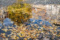 Spiegeling in een plas op de gevel van kasteel Dankwarderode en Burgplatz in Braunschweig Duitsland