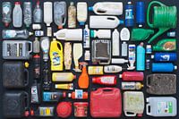 Een compositie samengesteld uit plastic verpakkingen van huishoudartikelen en huishoudproducten uit het water gevist in Amsterdam.